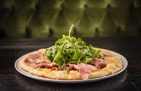 The Date and Prosciutto pizza brings together mozzarella, dates, lemonette arugula, truffle oil, and Parmesan cheese. The balance is perfect. Sweet fruit. Salty prosciutto. Earthy truffle. Fresh greens. A glass of Pinot Noir or a light Italian white pairs beautifully.